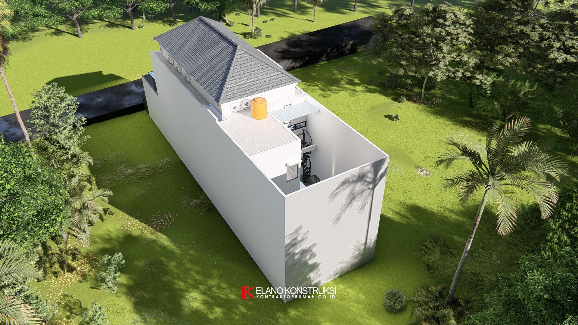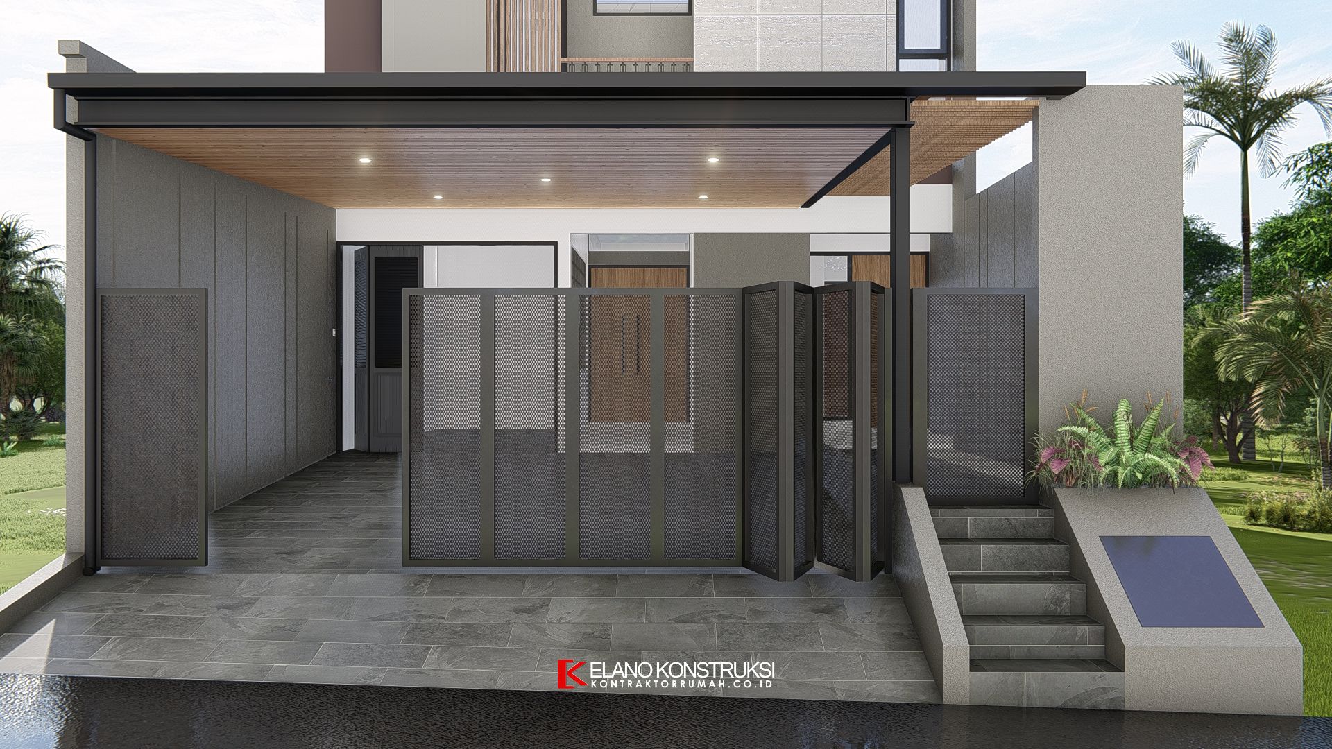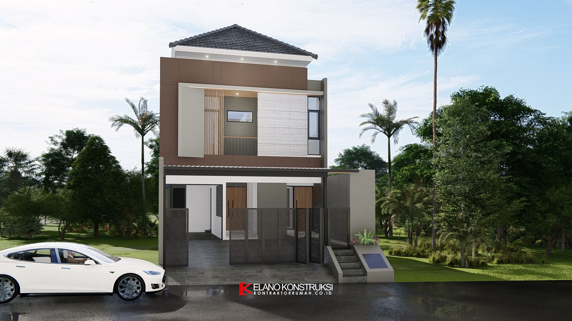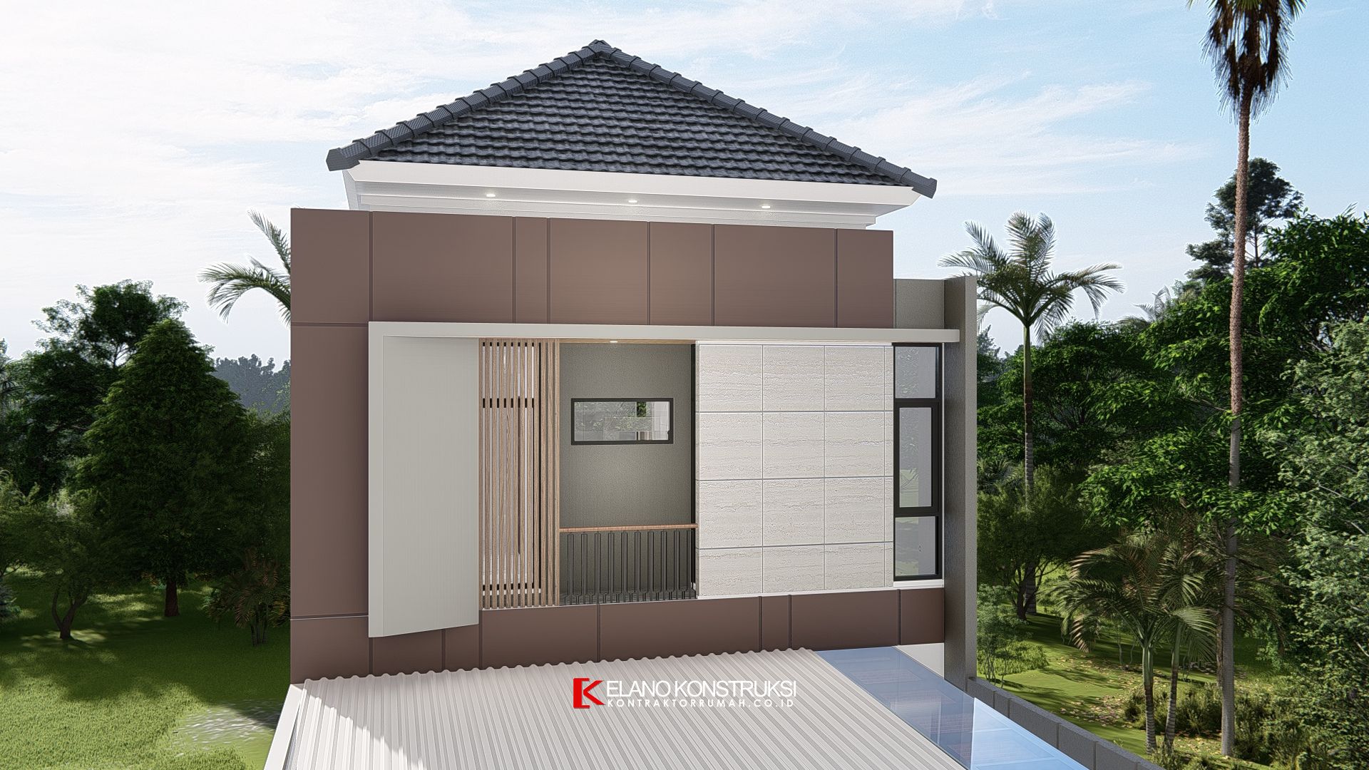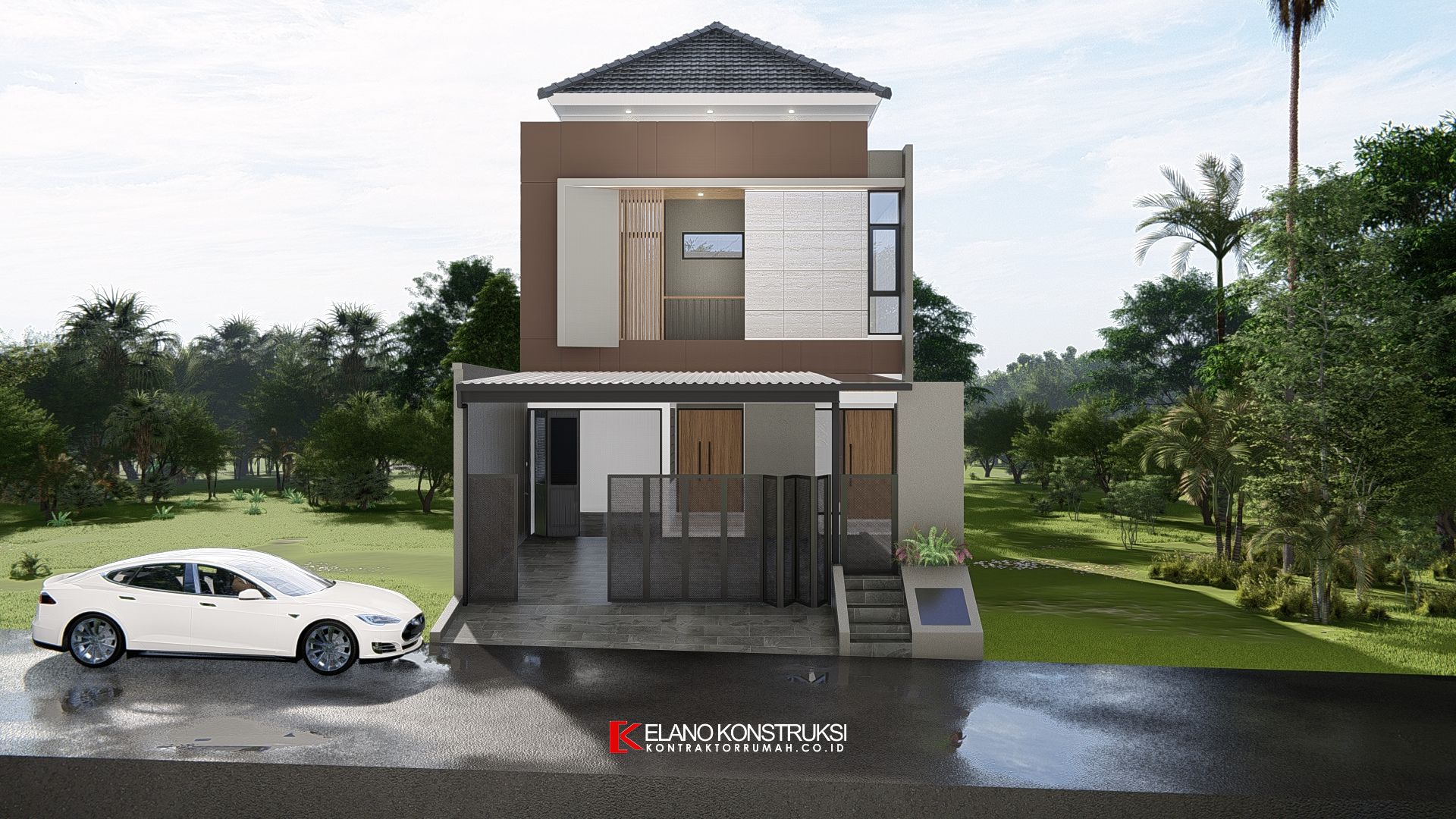 / Desain Rumah Tropis Modern Bapak Denny Depok 8 X 30 M